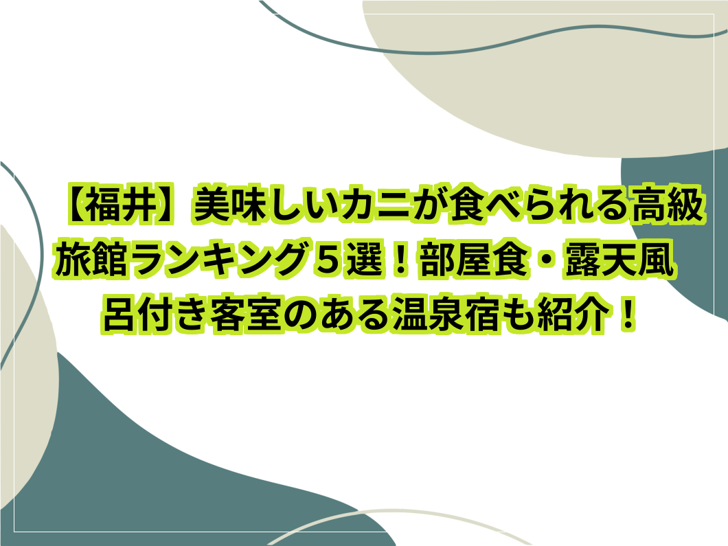 せっかく福井まで足を運ぶなら、美味しいカニが食べられる高級旅館で部屋食や露天風呂付き客室があると、思い出になりますよね。